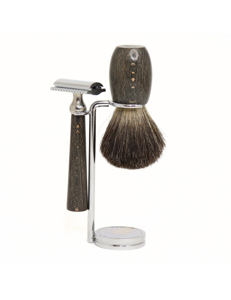 Set de Rasage 3 pièces 'GB' - Hêtre stabilisé/Teinté Noir / Sécurité
