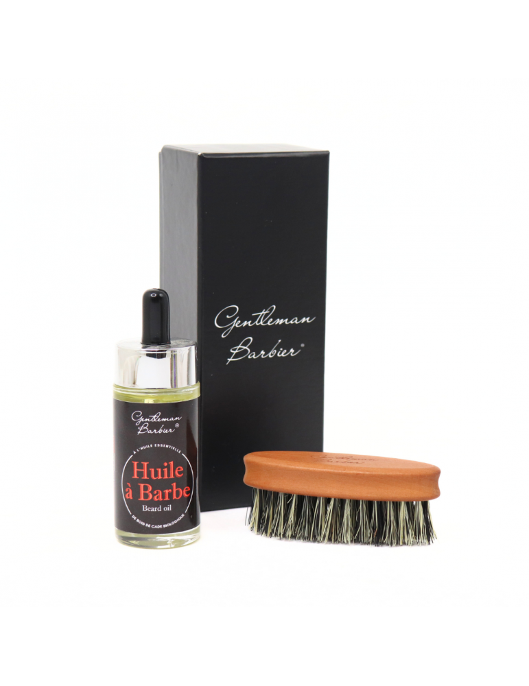 Coffret 2 pièces Soin à Barbe - Brosse Fibre de Cactus + Huile à Barbe